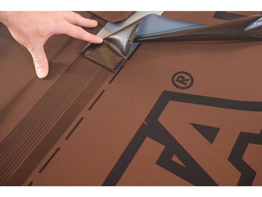 Materiál: | vysoce pevná polyesterová speciální textilie s difuzně otevřeným vodotěsným disperzním povrstvením a integrovanými samolepicími okraji po obou stranách pásu. |