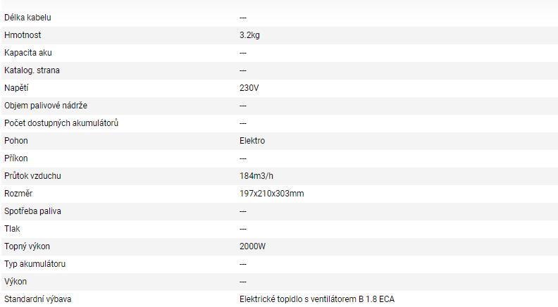 - nastaviteľný výkon - 4 polohy vypínača: vypnuté / 0,65 W / 1,3 kW / 2 kW