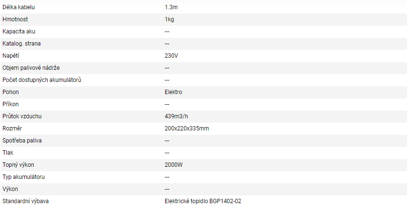 - Nastavenie tepelného výkonu: 3 (25 W, 1000 W a 2000 W)