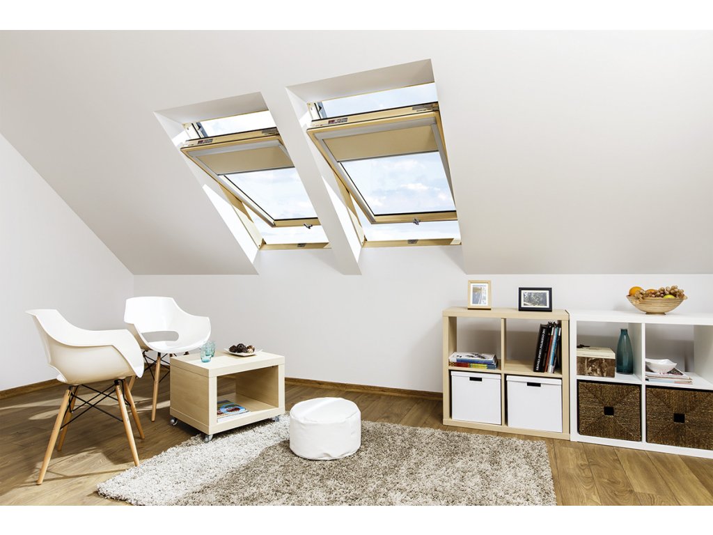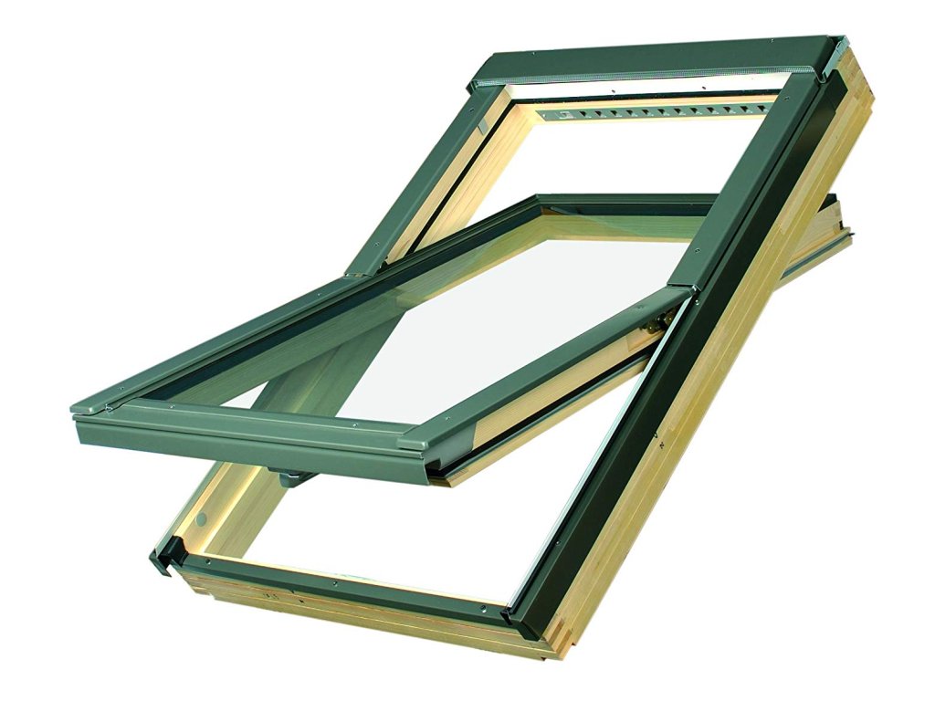 Super energeticky úsporné krídlové okno FAKRO z dvojitého ekologicky lakovaného borovicového dreva najvyššej kvality s päťnásobným tesnením vybavené trojsklom U6.