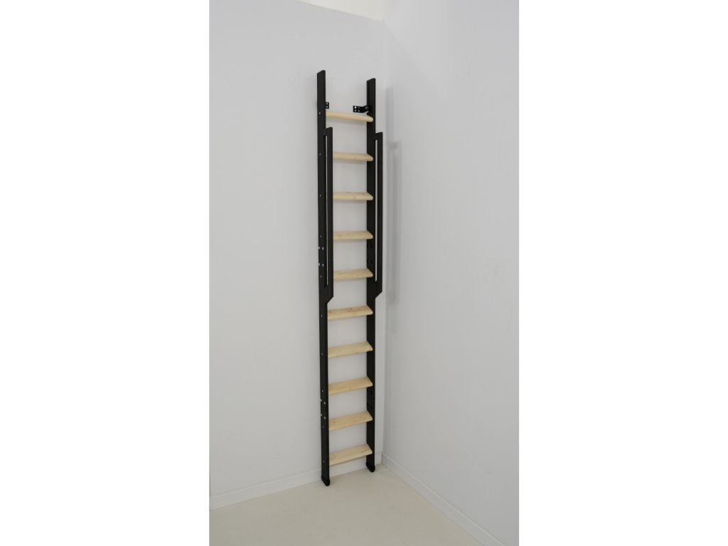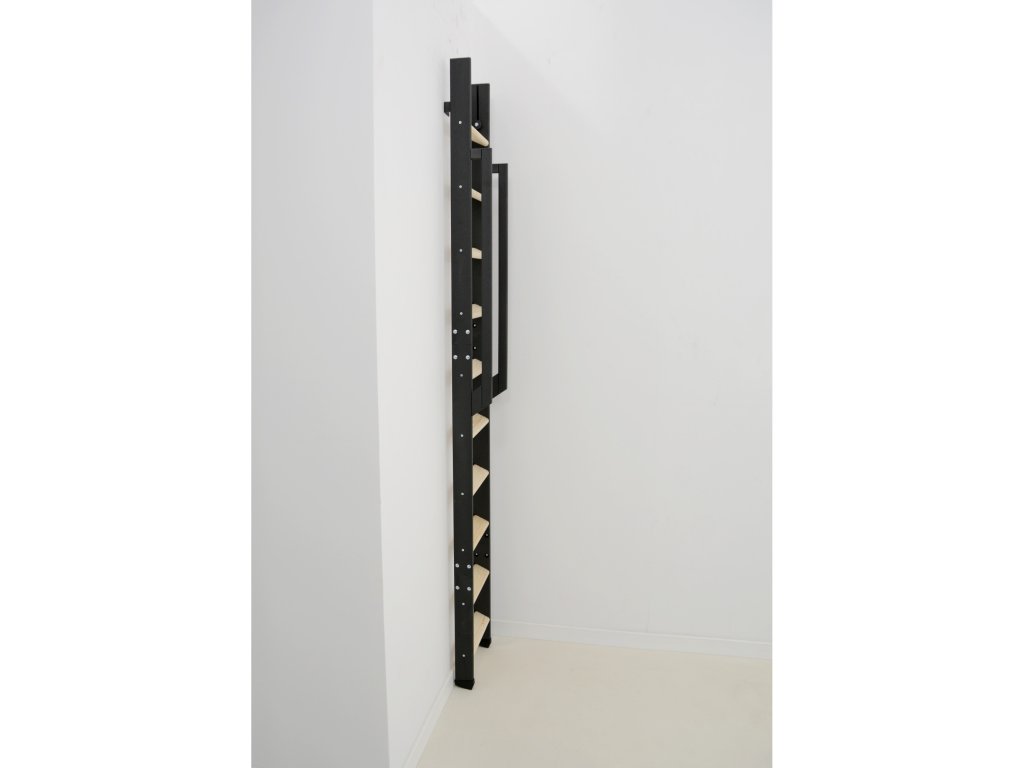 Tento produkt je reakciou na stále častejšie používanie medziposchodí v malých bytoch. Rebrík vám umožní bezpečne vstúpiť do medziposchodia / podkrovia bez toho, aby ste zabrali veľa miesta. Jednoduchá montáž na stenu umožňuje trvalé umiestnenie rebríka tak, aby jeho rozloženie trvalo niekoľko okamihov.
