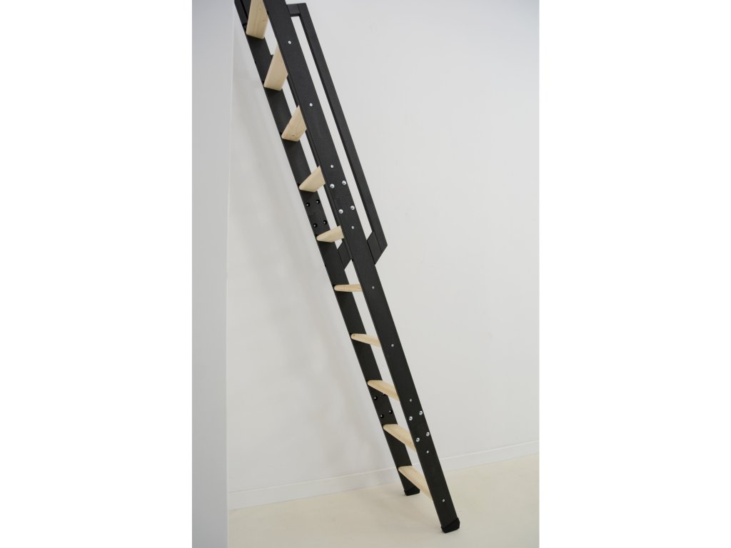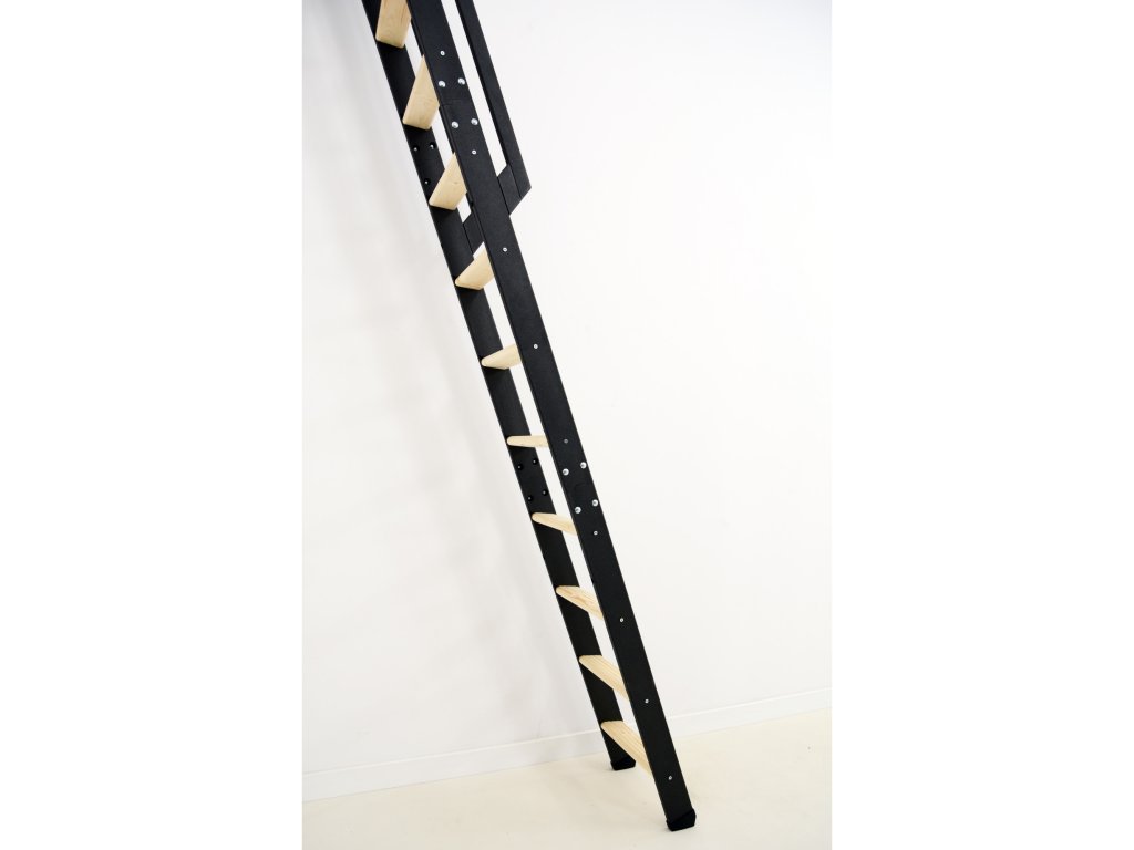 8 cm hlboké schodíky sú vyrobené zo smreku, ktorý umožňuje pohodlné používanie, schodíky sú profilované, čo zvyšuje ich bezpečnosť. Rebrík má pohodlné madlo, ktoré uľahčuje vstup a zaisťuje bezpečné používanie. Bočné prvky sú potiahnuté práškovou čiernou farbou, čo zaisťuje mimoriadnu trvanlivosť a odolnosť proti poškriabaniu.