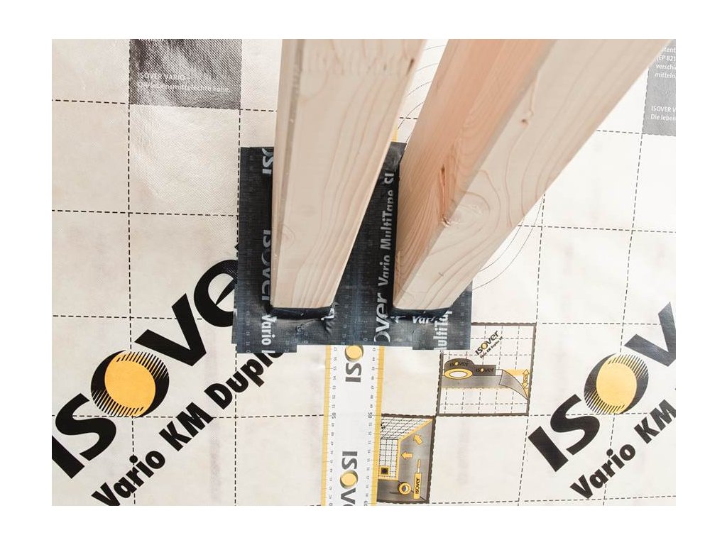 Systém doplňků Vario je speciálně vyvinut k lepení spojů v ploše a u detailů parobrzdy Isover Vario KM Duplex UV. Lepící páska pro vzduchotěsné přelepení přesahů parobrzdy Vario KM Duplex UV.