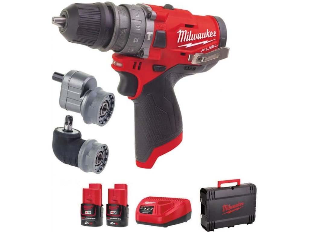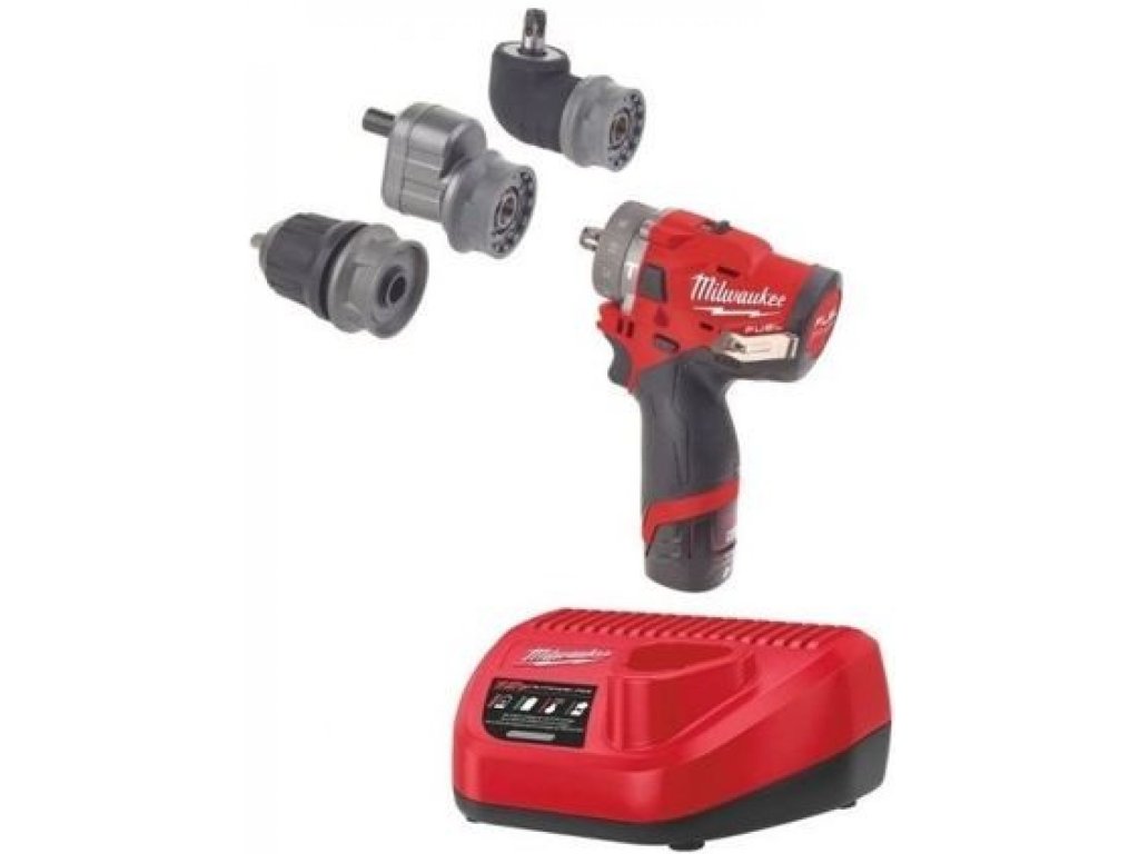 Batériový – akumulátorový vŕtací skrutkovač s príklepom, s tromi pracovnými nástavcami, krútiaci moment 37 Nm, v sade s dvoma batériami 2,0 Ah a rýchlonabíjačkou v kufri – Milwaukee M12 FPDXKIT-2 . Vďaka trom nástavcom ju môžete využiť na mnohých miestach, a to vrátane stiesnených a inak zle dostupných. Ideálne napr. pre autoservisné práce (na podvozkoch, v motorových priestoroch a pod.), ale aj pre montáže a ďalšie činnosti. Vďaka dvom akumulátorom a nabíjačke máte všetko potrebné pri sebe a môžete ihneď začať pracovať. Hlavné výhody: - Milwaukee® veľmi kvalitná a kompaktná príklepová vŕtačka so systémom „6 v 1“ pre extrémnu univerzálnosť - vyberateľný upínací systém s tromi rôznymi hlavami pre rôzne aplikácie -