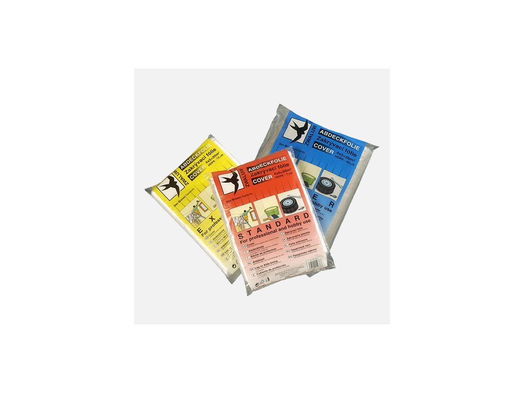 Pro vnitřní použití v domácnostech při malování nebo lakýrnických pracích. Chrání před barvou, vlhkem a prachem. Hrubší LDPE fólie Extra a Super, slouží pro zakrývání stavebních strojů, palet se stavebním materiálem, např. cementem, cihlami apod.