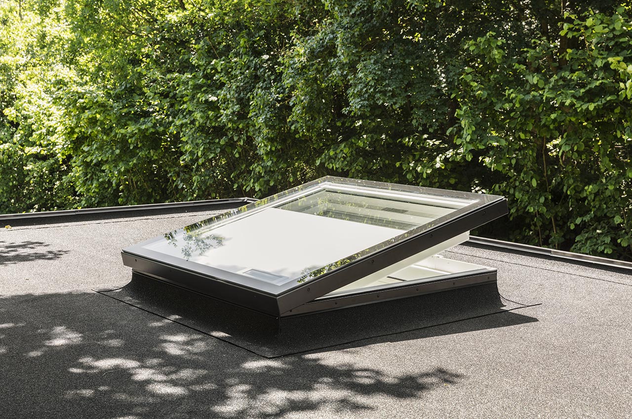 Dálkově ovládaná základna světlíku nové generace Velux CVU na elektrický pohon. Designový světlík...
