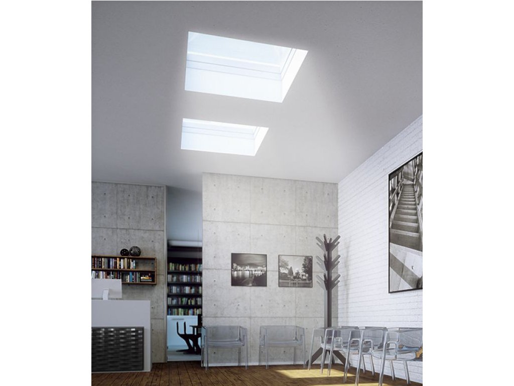 Okno do plochých striech typu F prináša nový pohľad na produkt. Okno vyniká veľmi dobrými termoizolačnými parametrami a moderným vzhľadom. Konštrukcia rámu je rovnaká ako u okien s kopulou. Rozdiel je v použitom zasklení, ktoré pri tomto okne vzniklo pomocou technológie vlepovania skla, čo zaručuje vysokú odolnosť a stálosť okna, a tiež estetický vzhľad.