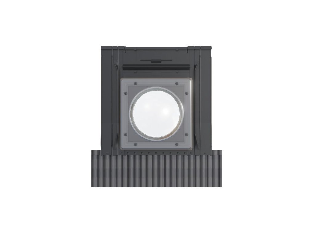 Střešní část se skládá z impregnovaného dřevěného rámu, lemování a polykarbonátové kopule. Do rámového profilu je zevnitř namontován prvek umožňující spojení se světlovodným tubusem, vyrobený z hliníkového plechu nebo speciálního organického skla (verze s dodatečným prosvětlením -L). Součástí střešní části světlovodu je integrované těsnicí lemování (podle druhu a výšky profilu krytiny). Celek je vyveden v barvě RAL 7022 (stínová šedá), která ideálně ladí s běžnými odstíny střešních krytin.