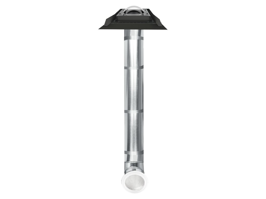 Tubusový světlovod s kopulí a pevným hliníkovým tubusem s lemováním pro ploché moderní krytiny.