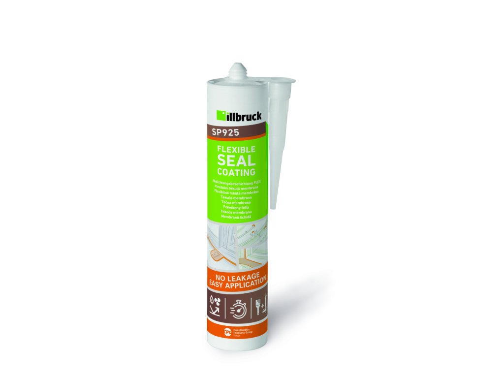 SP925 je tekutá membrána speciálně vyvinutá k zajištění vodotěsnosti a vzduchotěsnosti v místech, která je obtížné utěsnit tmely. Díky tomu, že SP925 lze roztírat stětcem, dokáže snadno utěsnit složité malé detaily. SP925 se snadno aplikuje a nestéká ani z vertikálních ploch. Alternativně lze membránu nanášet i rozstřikem pomocí pistole illbruck AA925. Produkt je vhodný i pro lepení.SP925 je nízkoviskózní pastovitá hmota na bázi technologie hybridního polymeru. Je chemicky neutrální a kompatibilní s většinou běžných stavebních podkladů. SP925 vytvrzuje prostřednictvím reakce se vzdušnou vlhkostí a vytváří pružný a vzduchotěsný povlak (izolační membránu) odolný vůči povětrnostním podmínkám a UV záření. SP925 se vyznačuje skvělou přilnavostí, a to i na mírně vlhkých površích. Produkt je určen pro aplikace v exteriéru, které nespadají do kategorií určených normou ČSN EN 15 651: 1 až 4. SP925 lze roztírat štětcem nebo rozstřikem, a tak je možno snadno utěsnit složité detaily. Produkt je velmi šetrný vůči zpracovateli a životnímu prostředí.