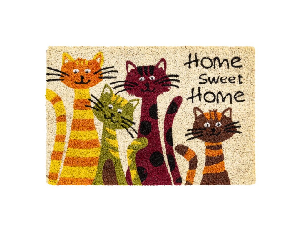 Kokosová vstupní rohož FLOMA Ruco Cats Home Sweet Home - délka 40 cm, šířka 60 cm, výška 1,5 cm