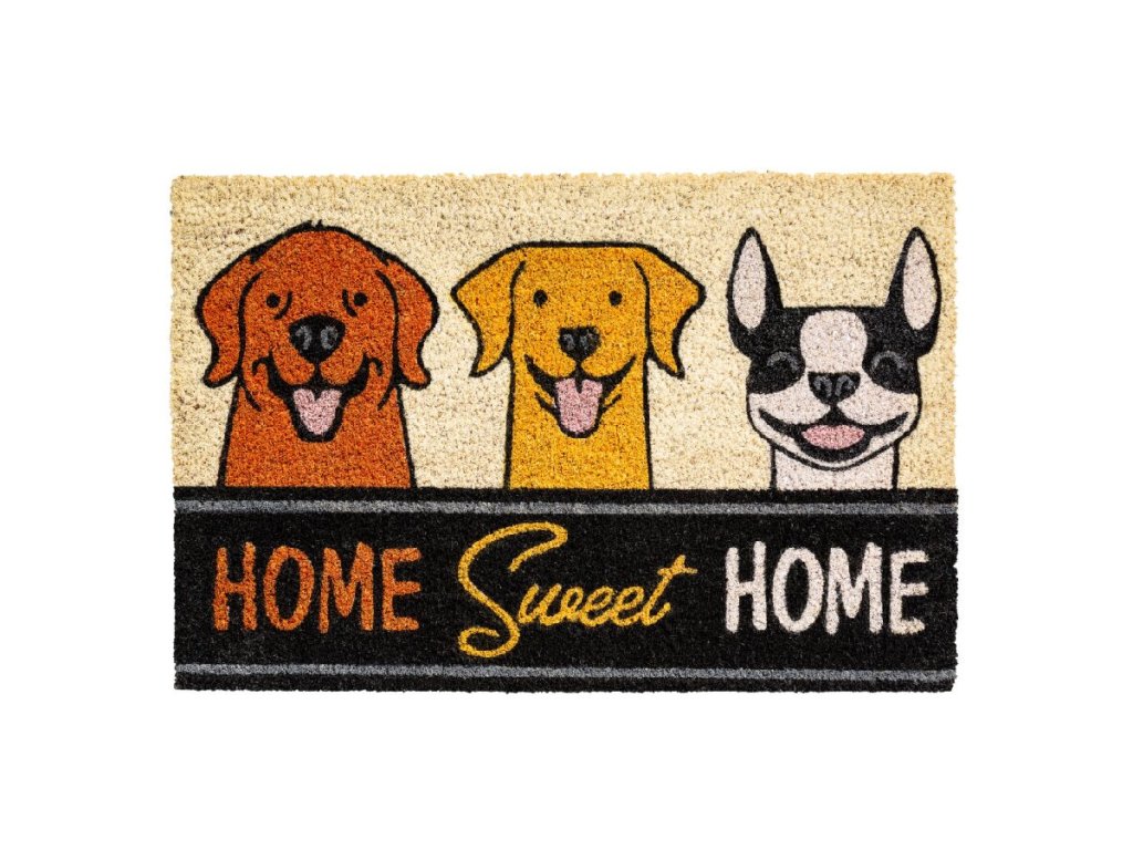 Kokosová vstupní rohož FLOMA Ruco Happy Dogs Home Sweet Home - délka 40 cm, šířka 60 cm, výška 1,5 cm