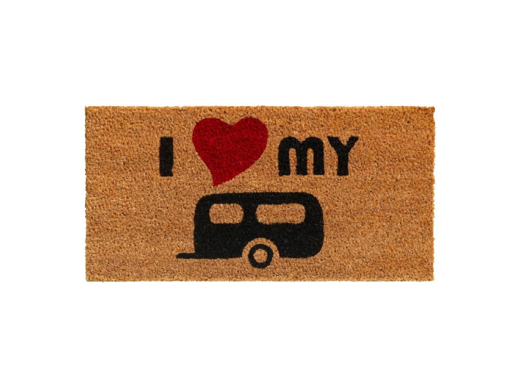 Kokosová vstupní rohož FLOMA Ruco I Love My Trailer - délka 25 cm, šířka 50 cm, výška 1,5 cm