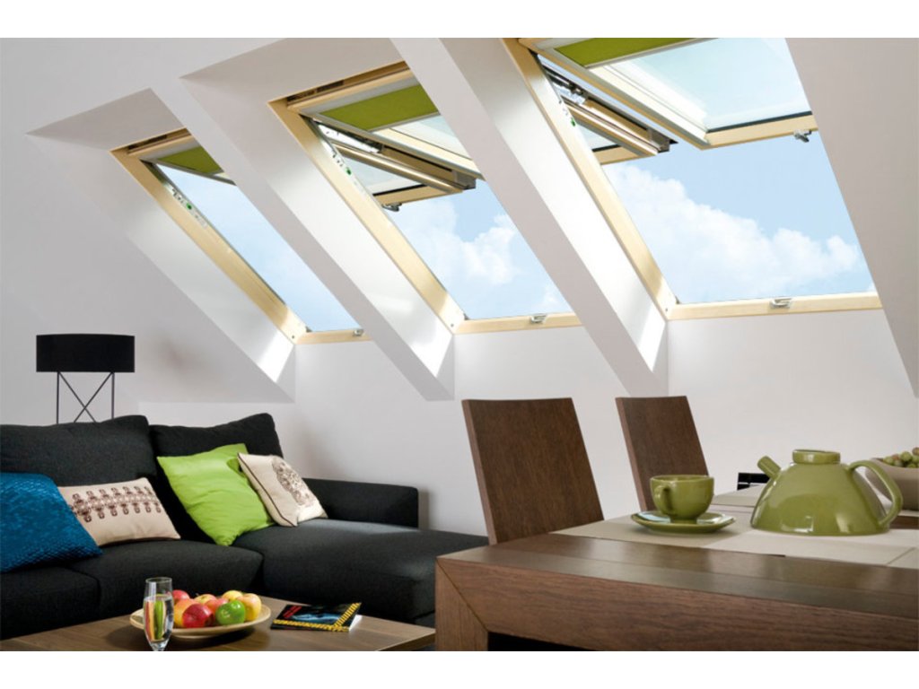 Střešní Fakro okno nové generace vybavené dvěma oddělenými funkcemi otevírání – výklopnou a kyvnou.Obě funkce poskytují stabilitu a bezpečnost užívání při kterémkoliv způsobu otevření.